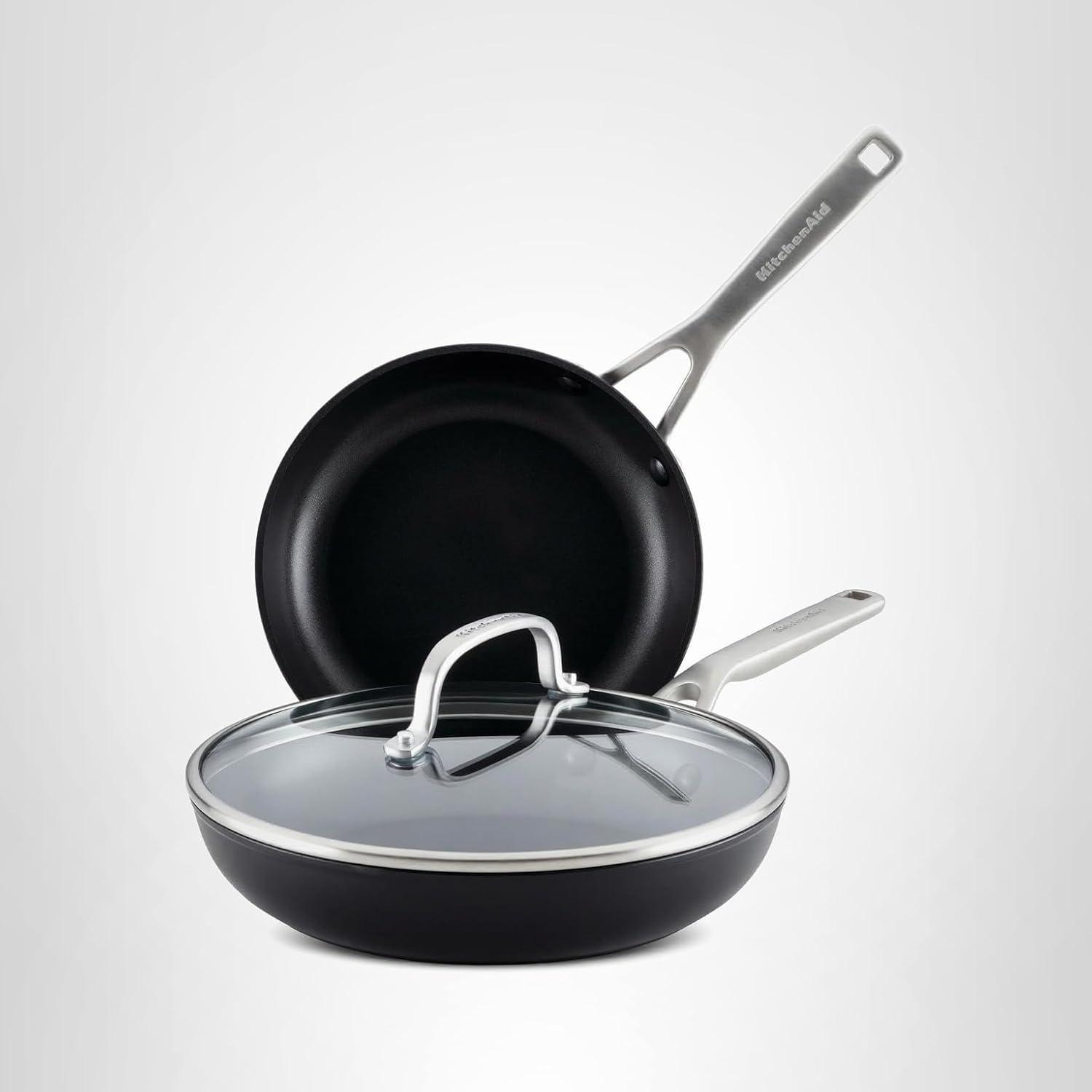 KitchenAid Hard Anodized Induction Nonstick Cookware Saute Pan/Jumbo Cooker with Lid and Helper Handle, Dishwasher Safe, 5 Quart Non Stick Sauteuse with Stainless Steel Handles – Matte Black(Skillet Set (3 Piece))
