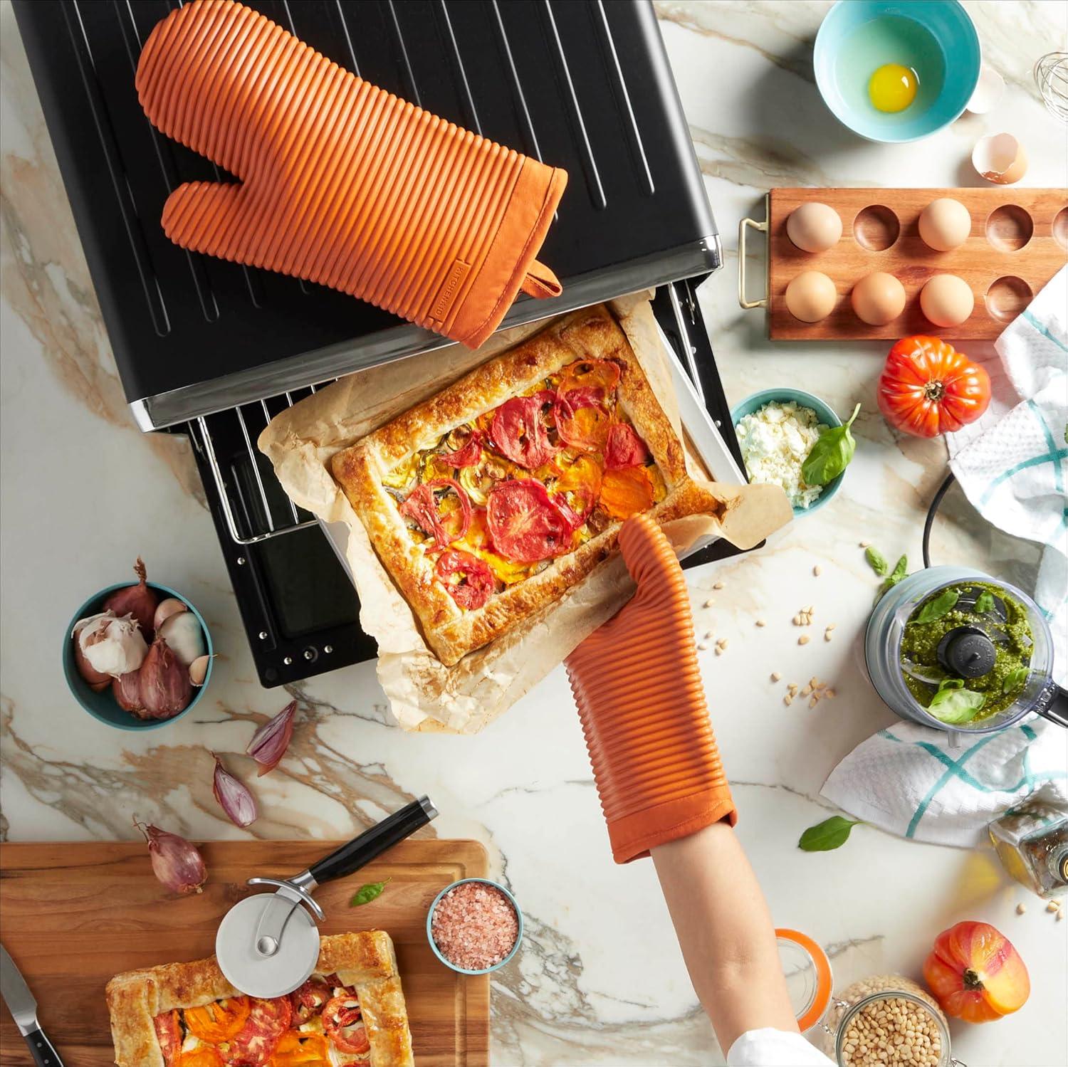 DURABLE, HEAT RESISTANT SILICONE: The KitchenAid Ribbed Soft Silicone Oven Mitts are heat resistant up to 500 degrees Fahrenheit to safely shield hands from the heat while cooking and handling hot pans and dishes.